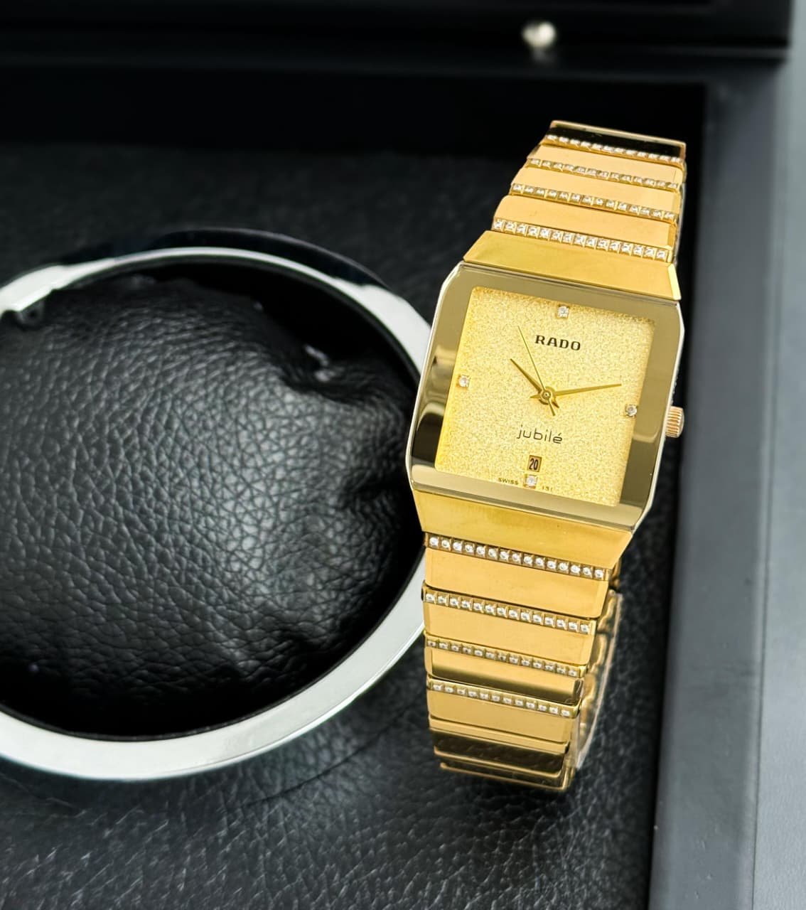 -Dial: Gold with diamond markers, luminous accents, and Rado logo